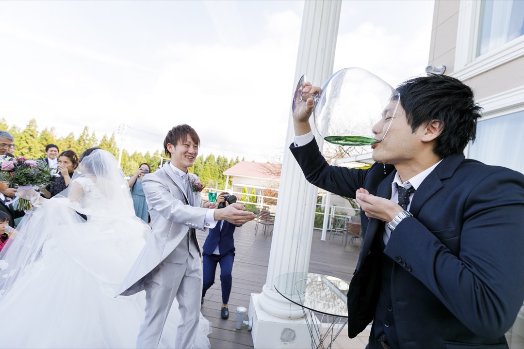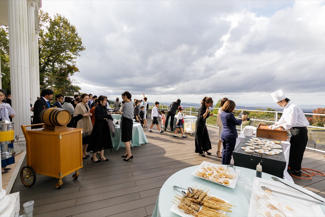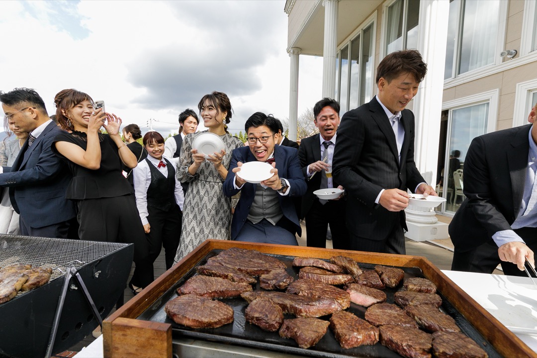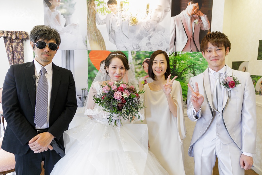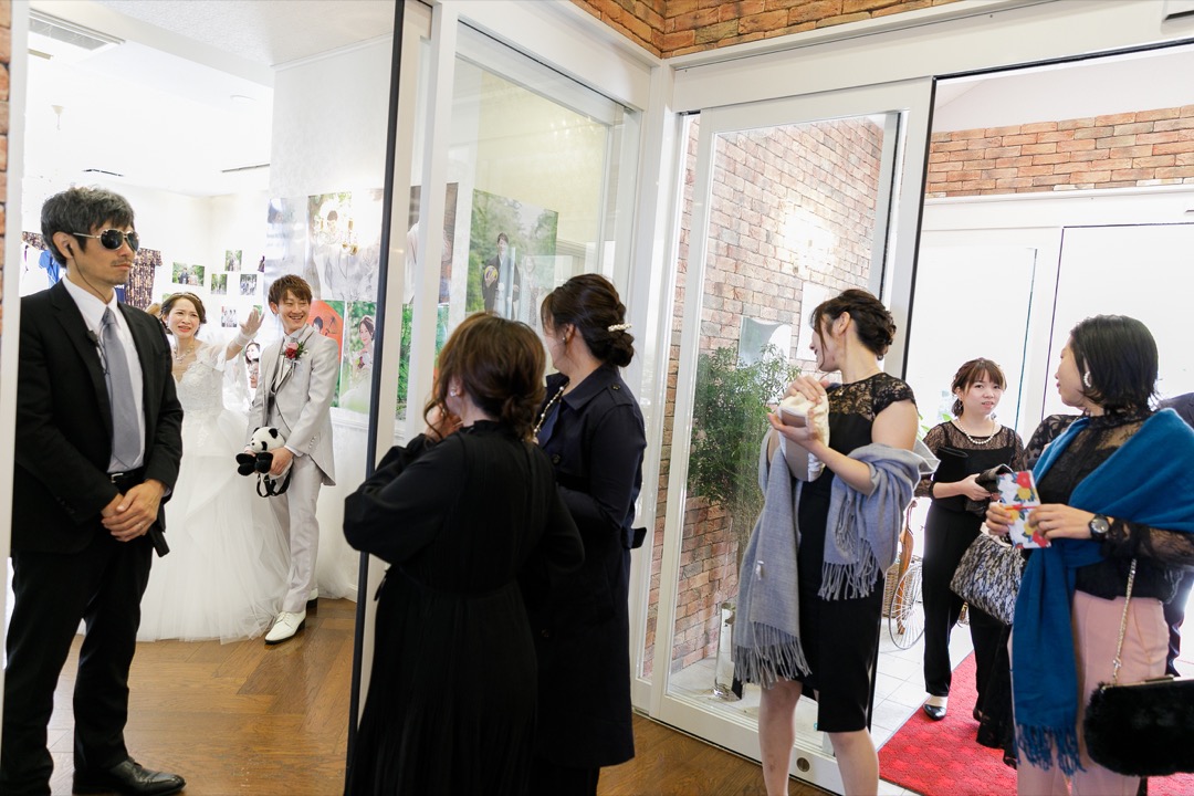 結婚式前のウェルカムパーティーではお客様は招待状で送られた握手会のチケットをを提示するとガードマンが部屋に通してくれて握手と写真撮影(お一人10秒のみ)ができます。