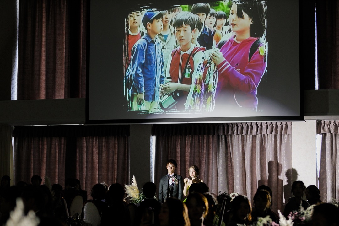 パーティー後半には新婦の幼い頃を子役の役者さんが再現するメモリープレイが行われました。
