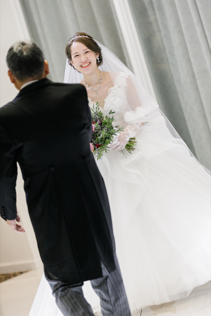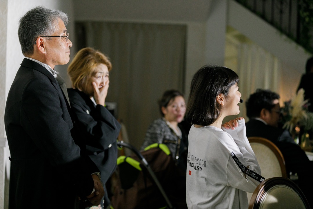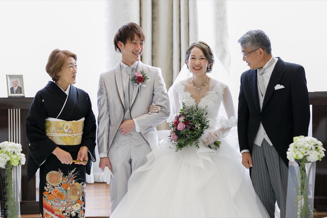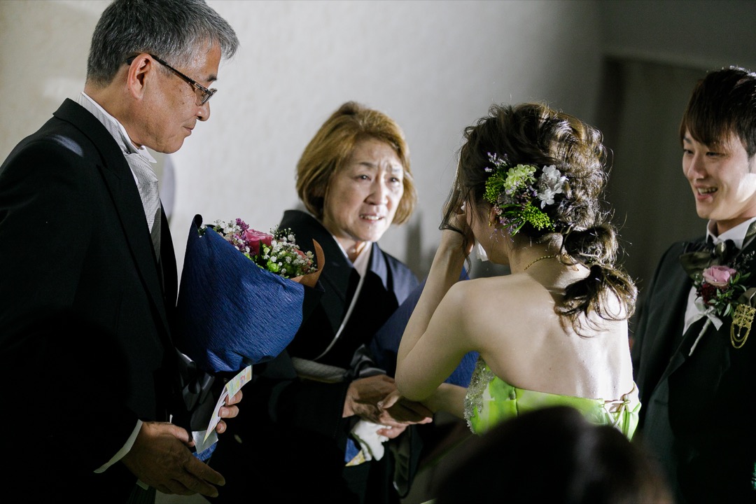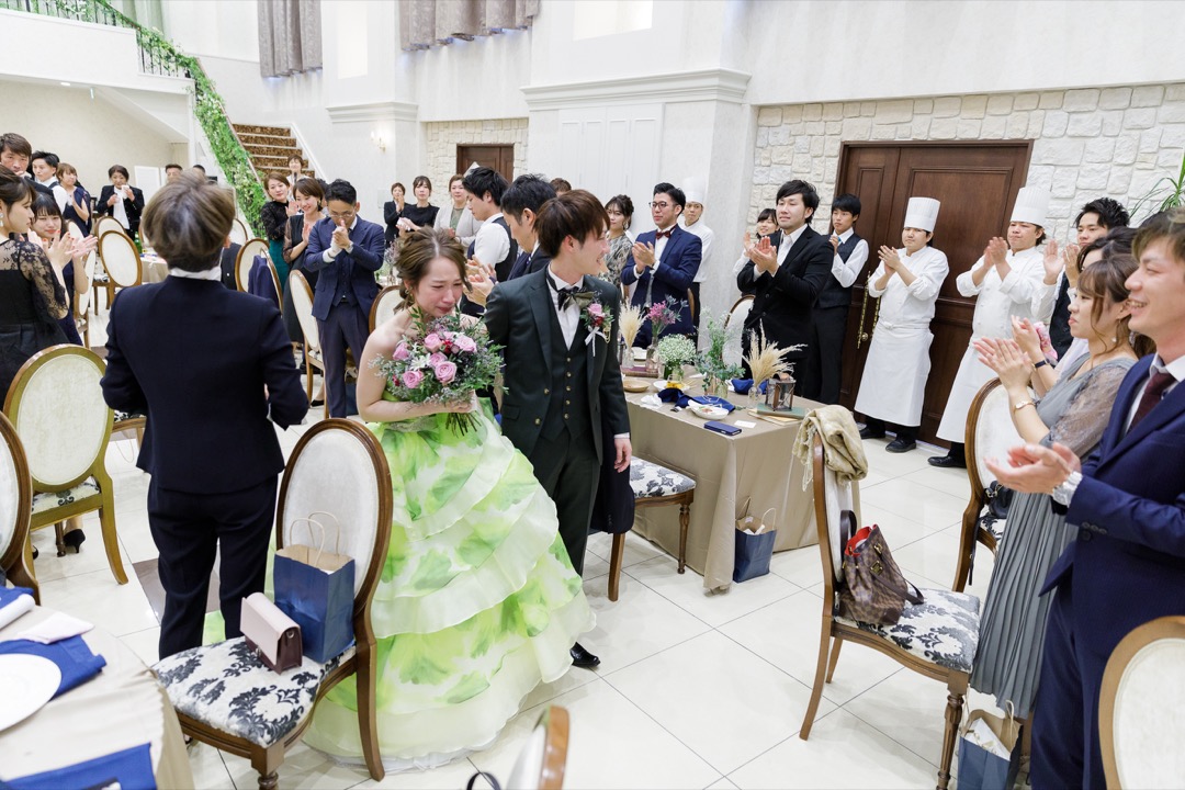 突然の小さな新婦の登場にお母様も思わず涙。