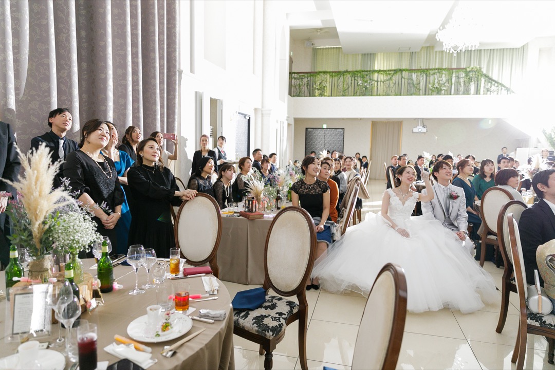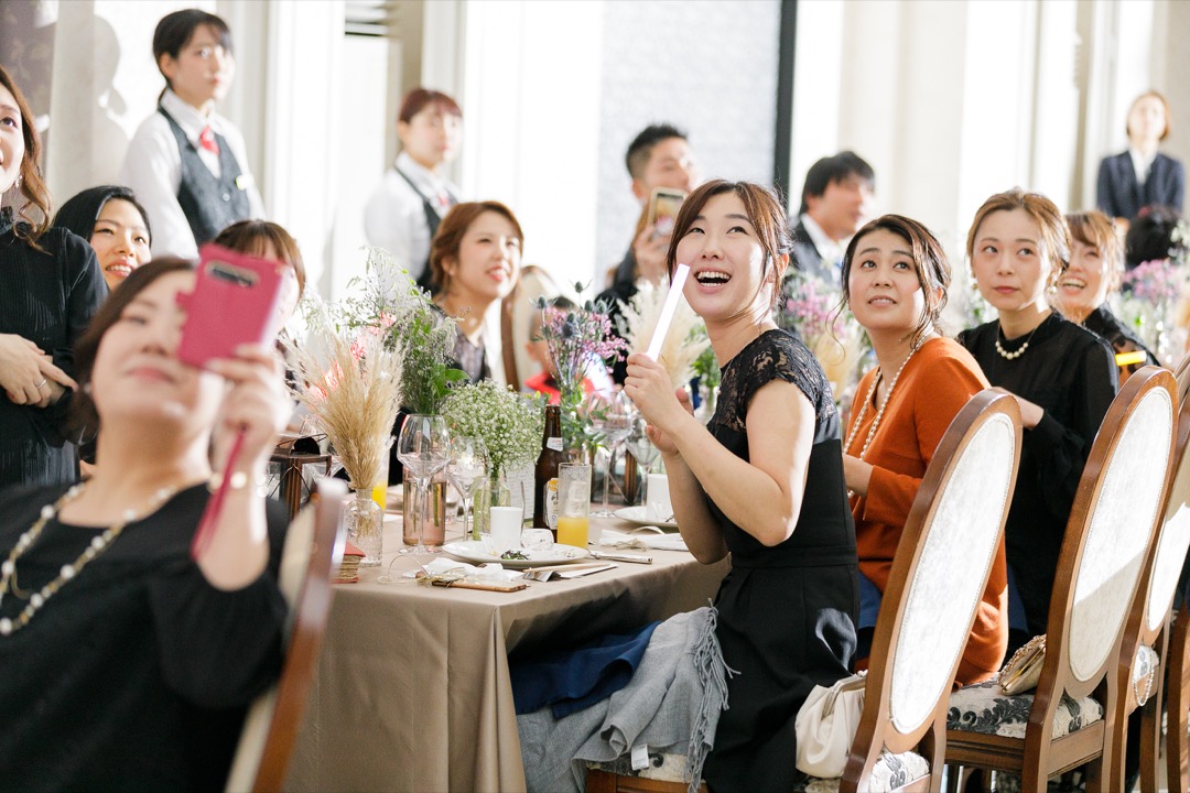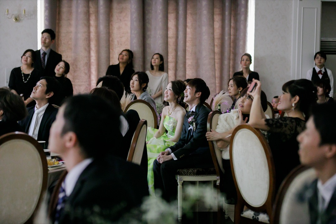 ところどころに新郎新婦のポスターが貼られ、部屋の雰囲気はまるでアイドルに会いに集まったファンクラブのよう。