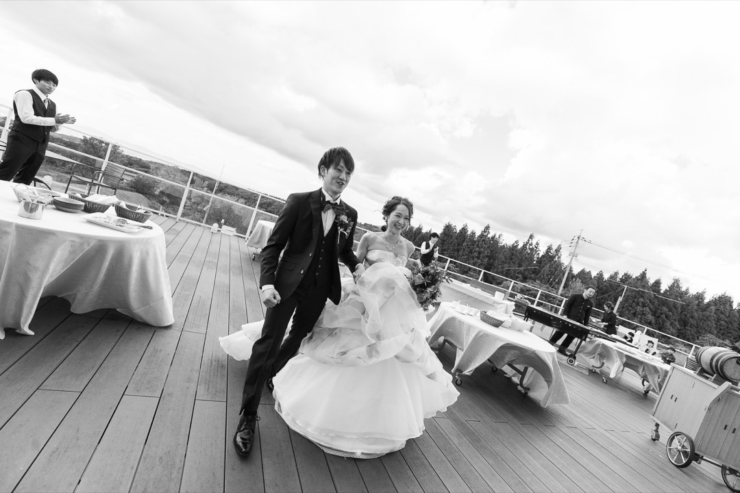 新郎は曲に合わせてローラースケートで入場。