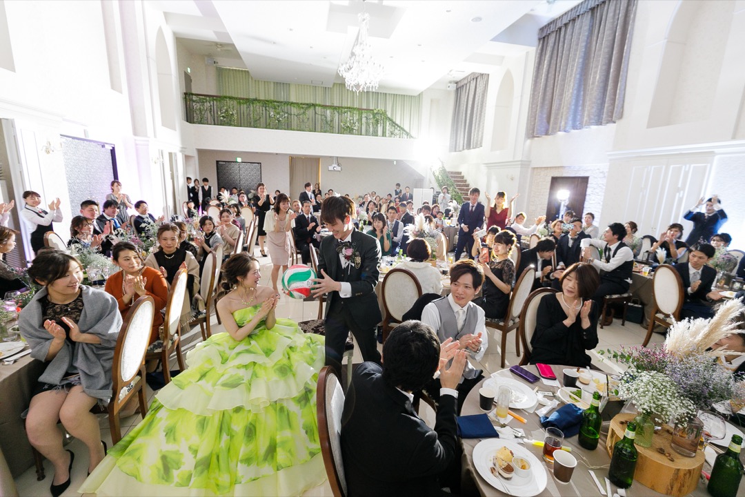 結婚式にご招待された方は、みなさま「握手会」に当選した方々。。。と、そんな設定で行われた結婚式。