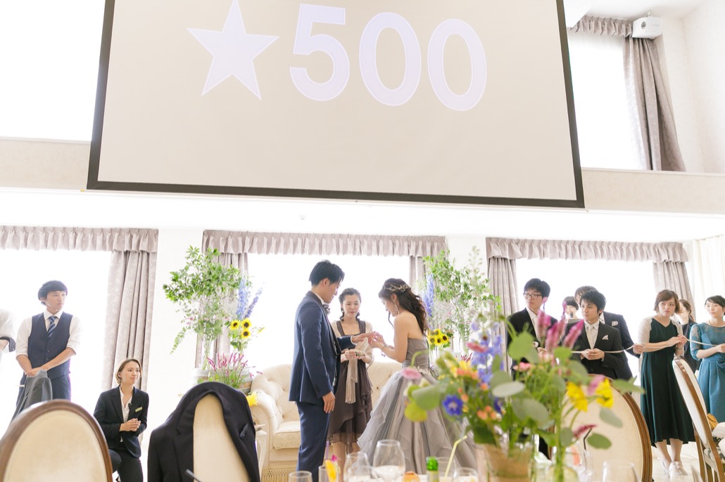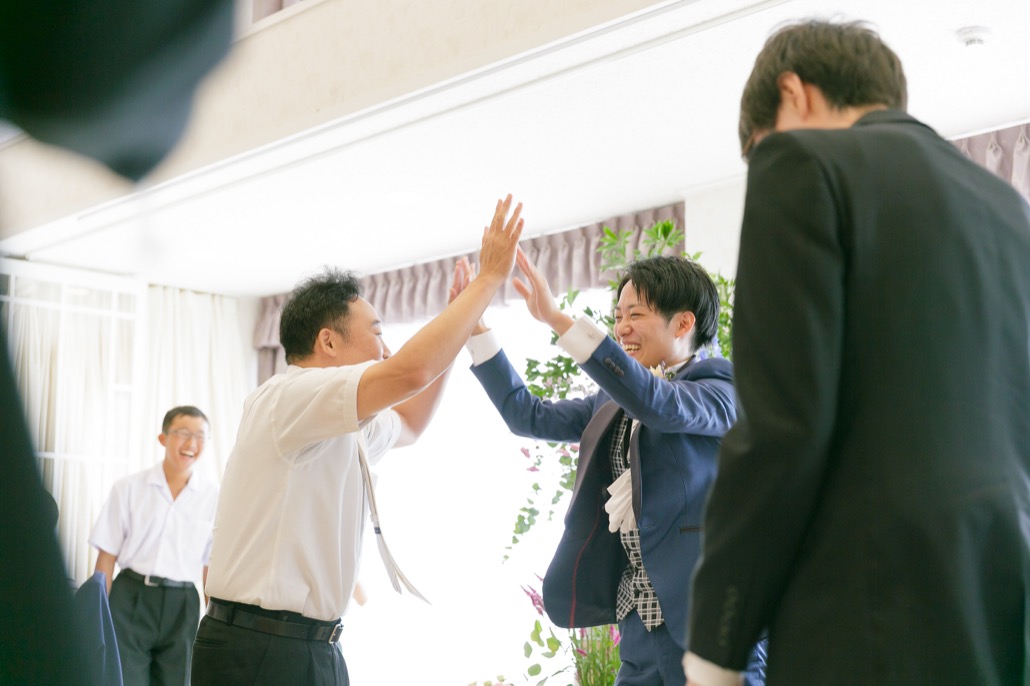 当日は新郎新婦だけでなくゲスト同士、スタッフとゲストでもハイタッチしてハイタッチのカウントを増やしていきます。