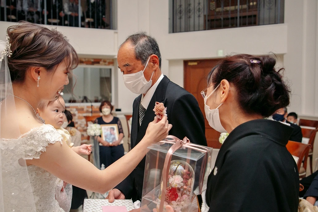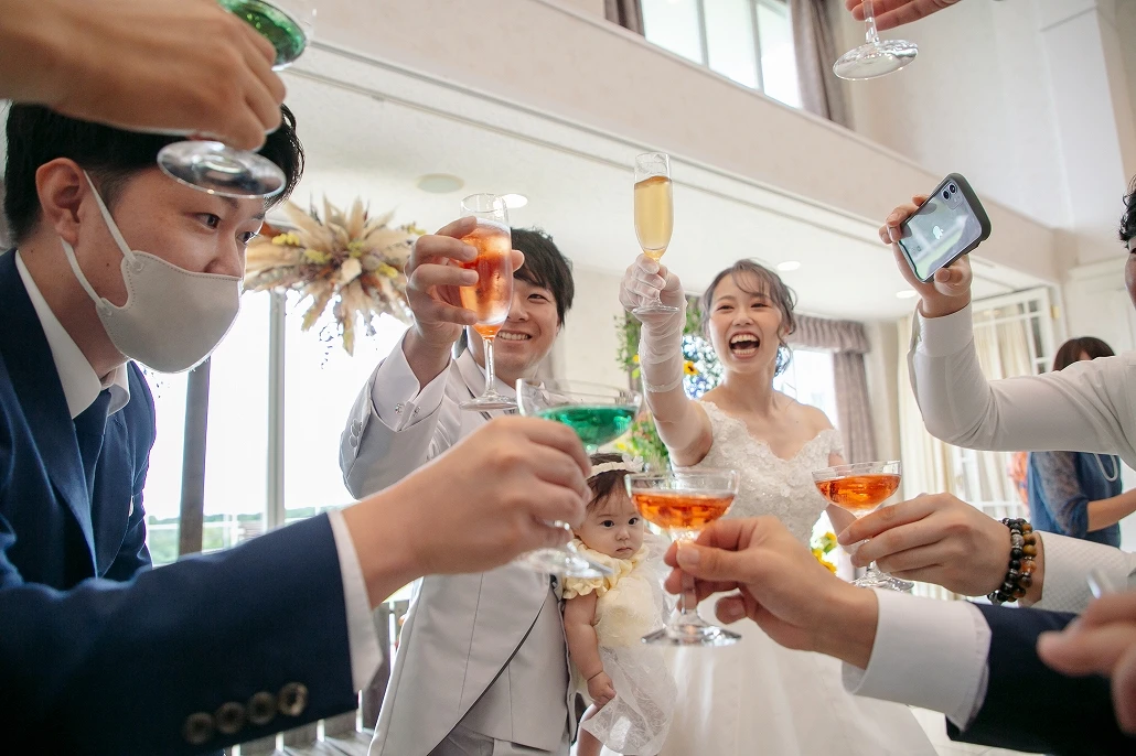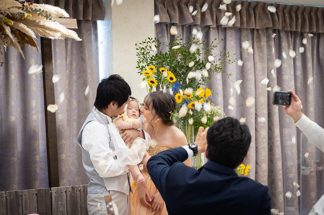 新婦と新郎の息の合ったコンビネーションでくす玉を割っておひらきとなりました。
