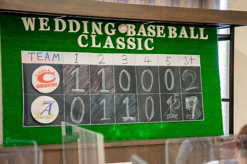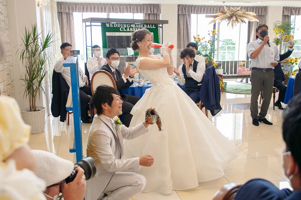 野球とソフトボールをしていたおふたりがプランナーと選んだテーマは「ウェディング・ベースボール・クラシック」