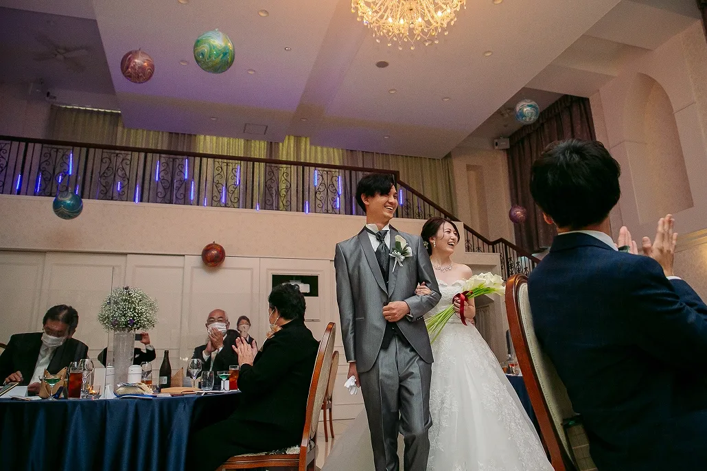 最後は地球に帰って新郎さんからのサプライズ。退場後にカーテンコール になっても戻ってこない新郎さんに焦る新婦さん。「もう扉が開いちゃう・・・」
