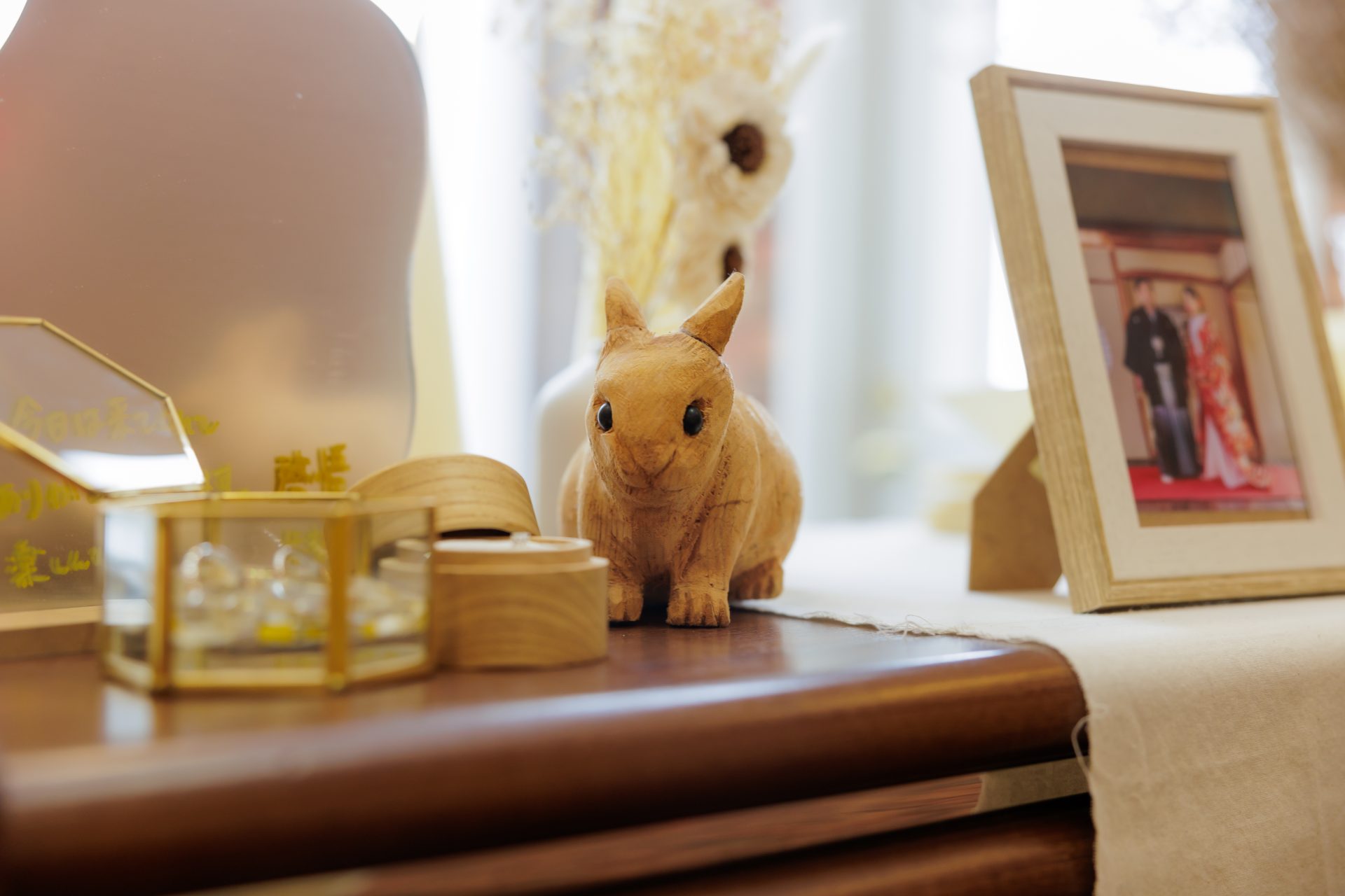 まず会場でゲストの皆様をお迎えしたのは新郎様のお祖父様が手作りされた木の彫刻の数々!